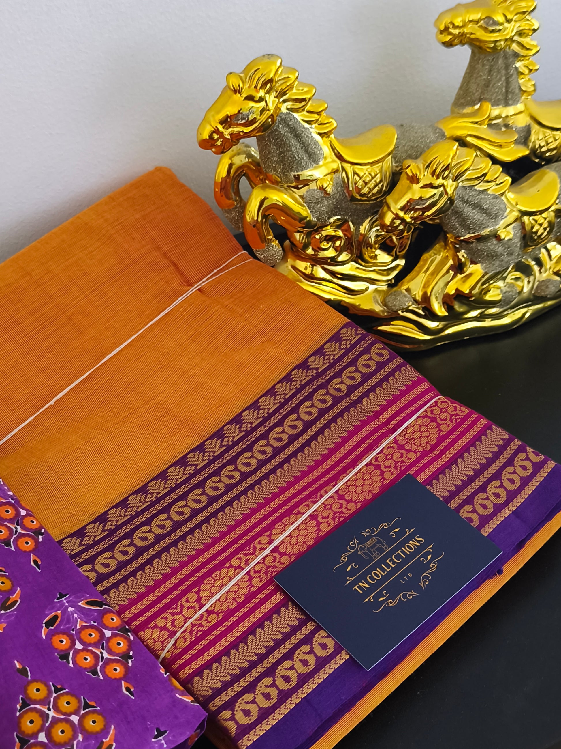 Beautiful Chettinad Cotton Saree with contrast blouse material.