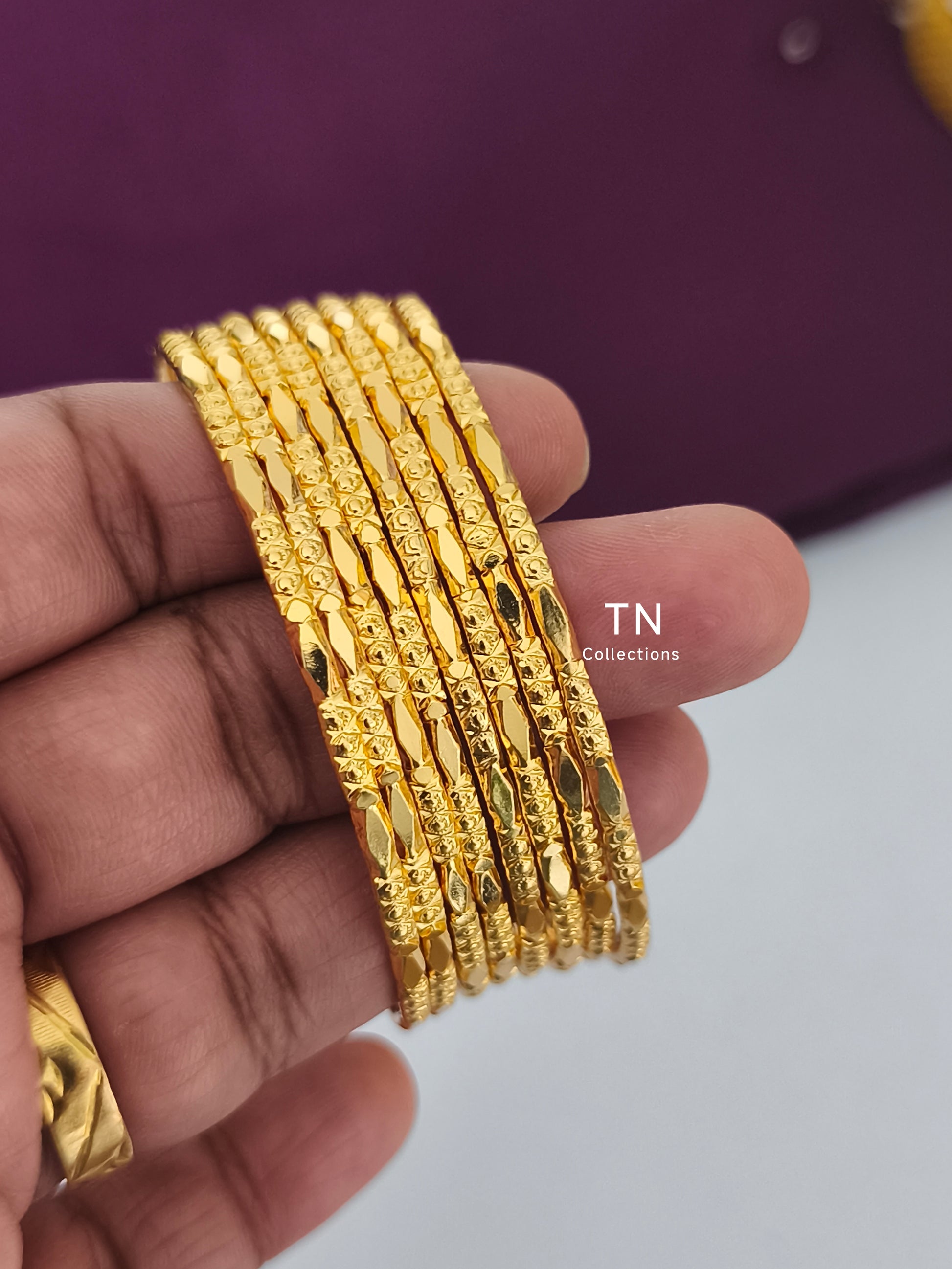 Gold Plated Simple Slim Bangles Set (Size 2.6)