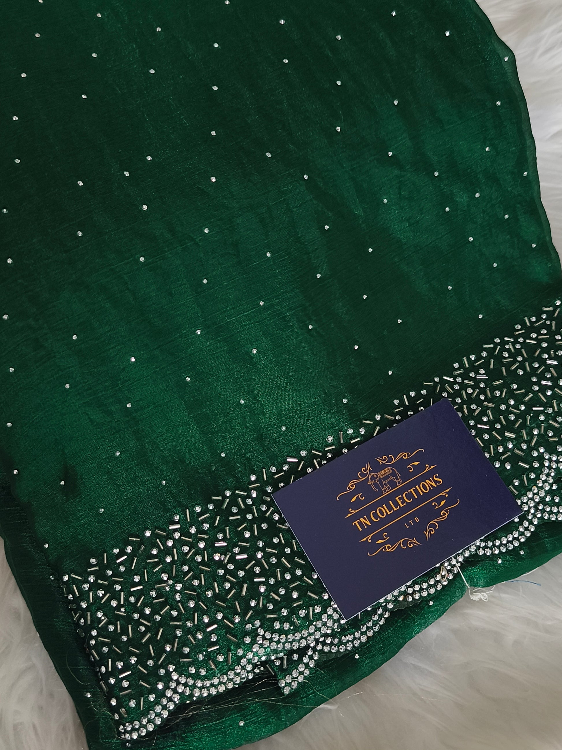 Trendy Space silk saree with jarkhan work stone work.