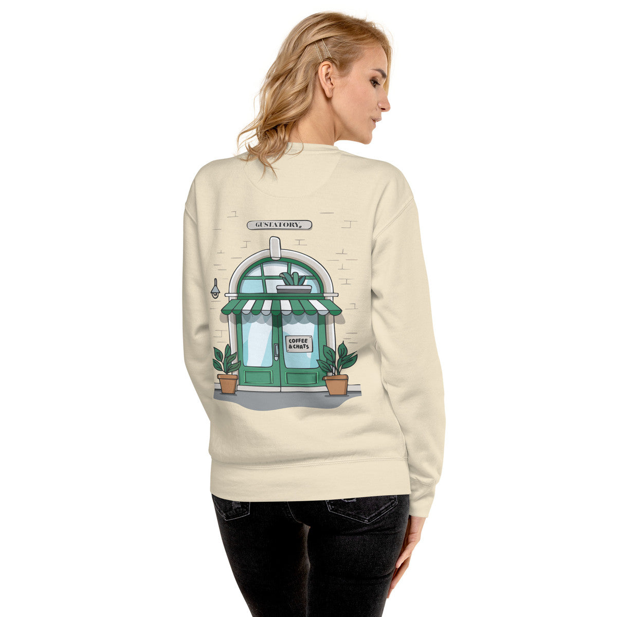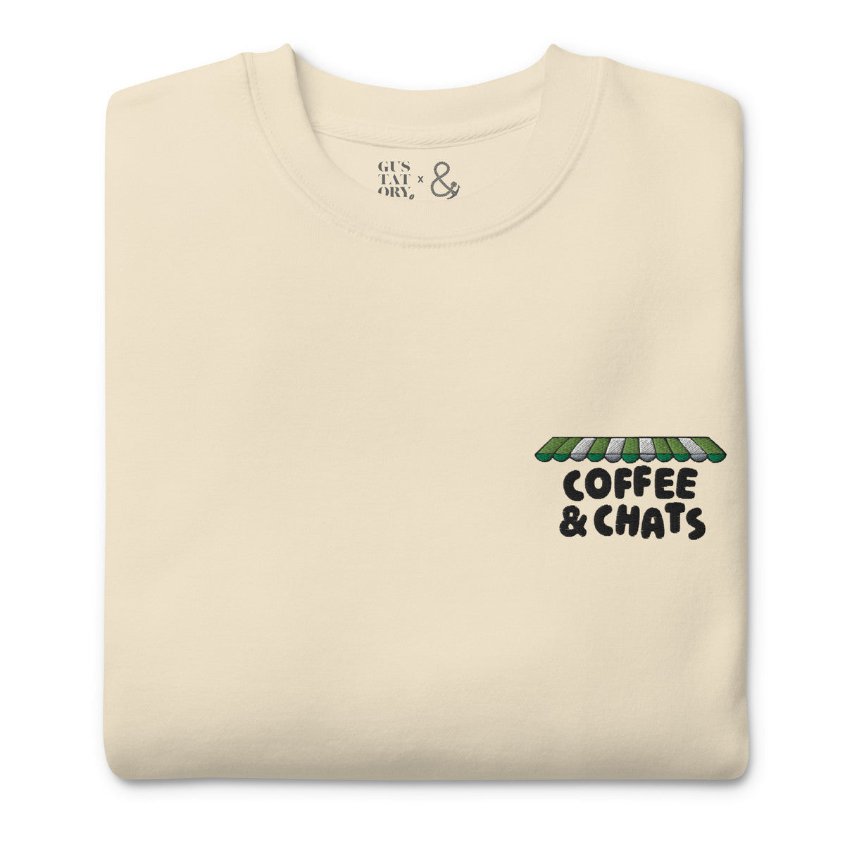 In collaboration with GUSTATORY, the GUSTATORY Coffee & Chats Cotton Blend Embroidered Sweatshirt was designed in-house and is manufactured-to-order on demand in our best effort to overcome the two biggest contributors to waste in fashion: overproduction and guesswork. High-quality, super soft and eco-consciously made, this GUSTATORY x ANCHOR & CREW sweatshirt features: