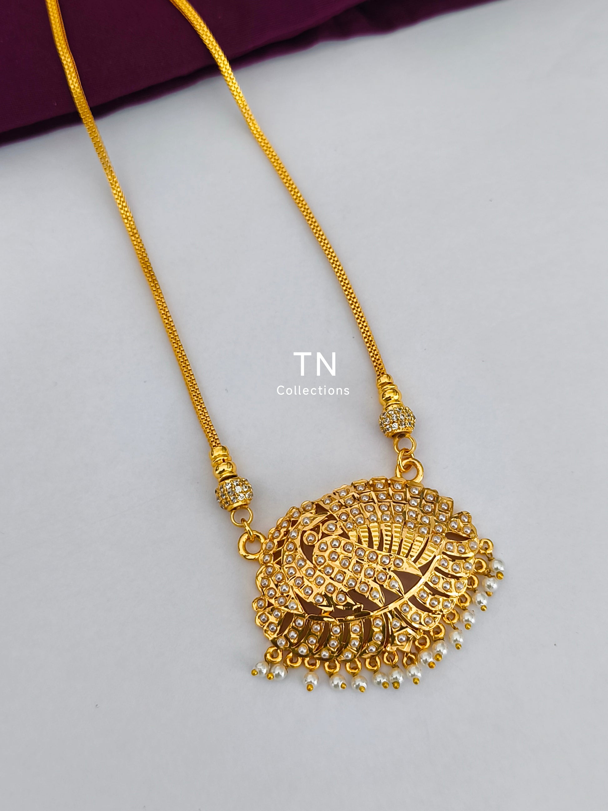 Micro gold plated Traditional Peacock Design pearl Pathakkam with gold plated chain.