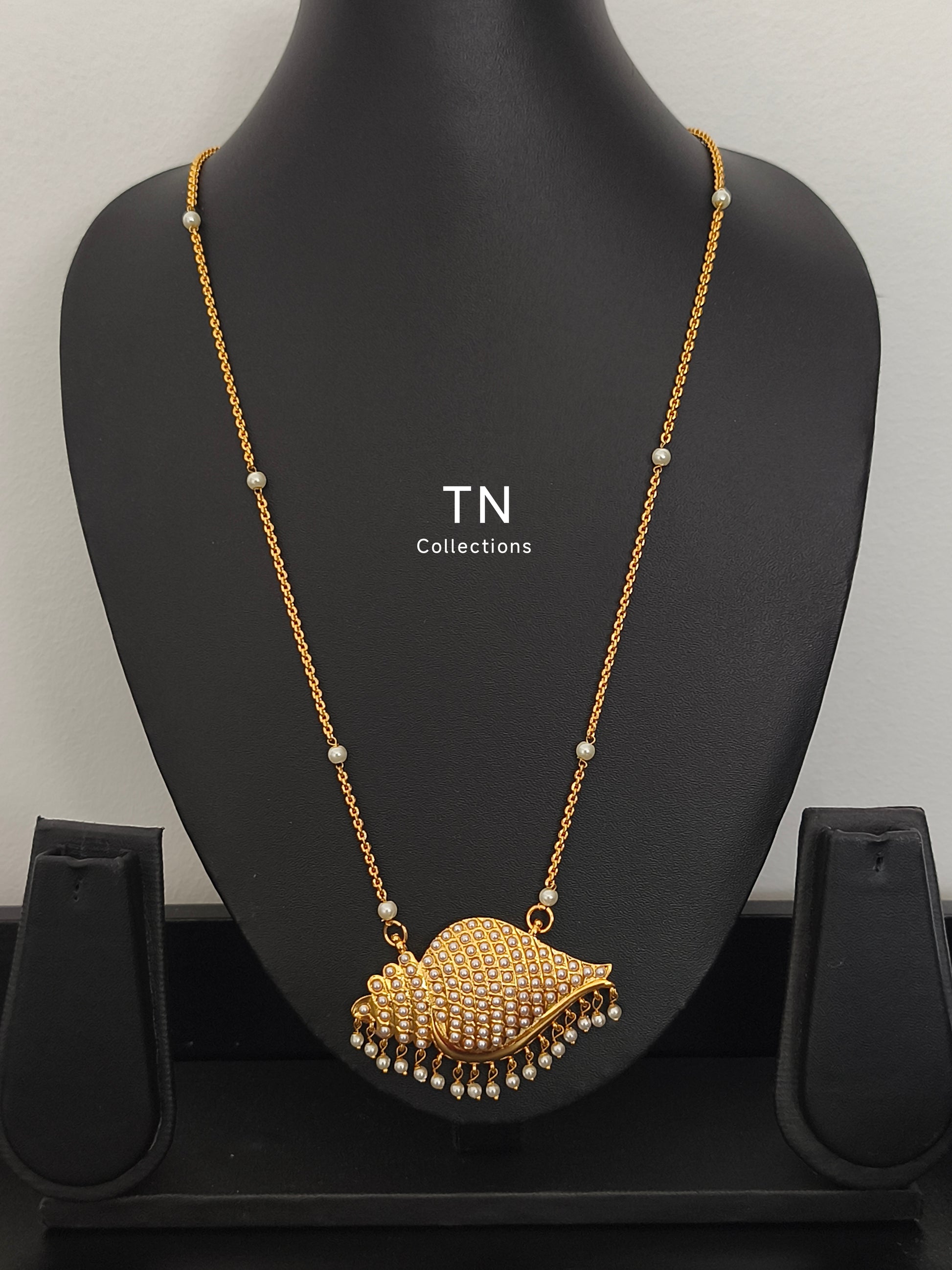 Micro gold plated Sangu pathakkam with single layer pearl chain