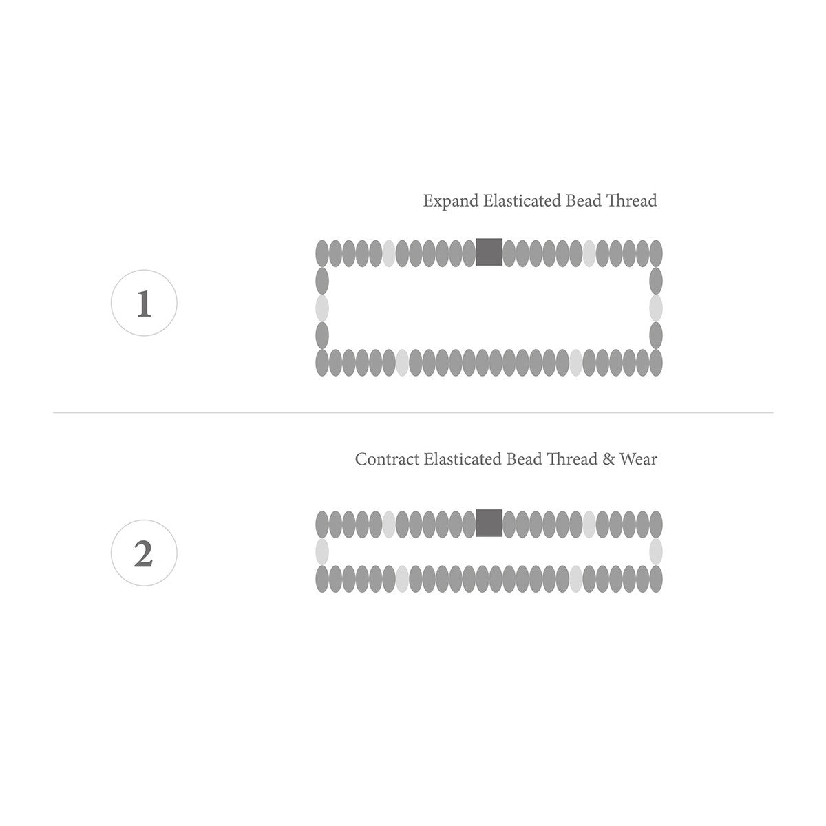 This bracelet is available in four bracelet lengths, 17cm, 19cm, 21cm or 23cm in circumference, with the elastic nylon thread able to expand to fit onto your wrist. To take the bracelet on or off your wrist, simply slide the bracelet over your hand. Less is More.