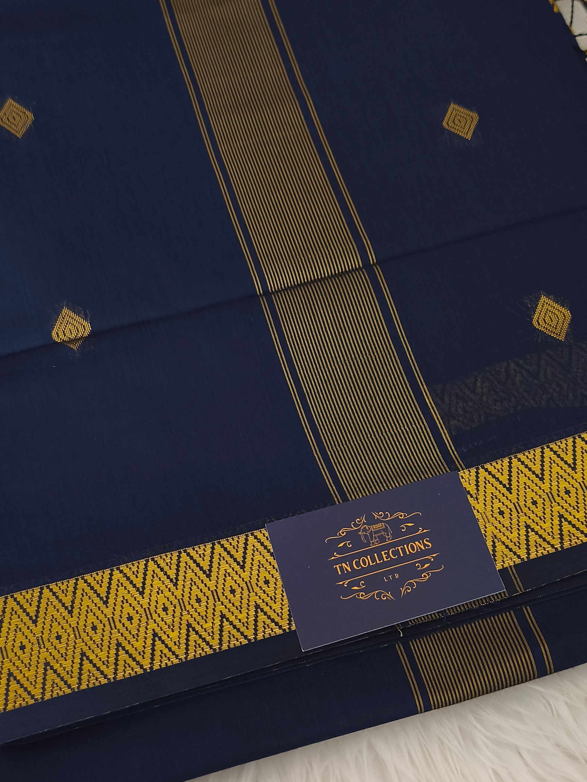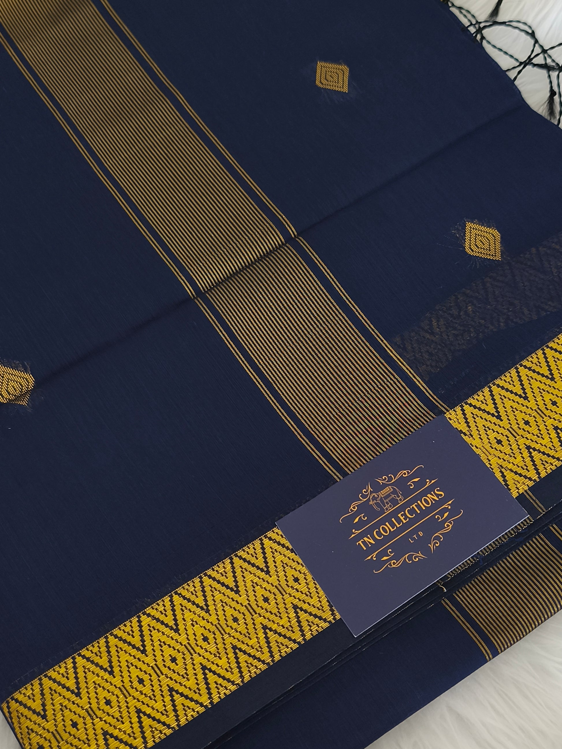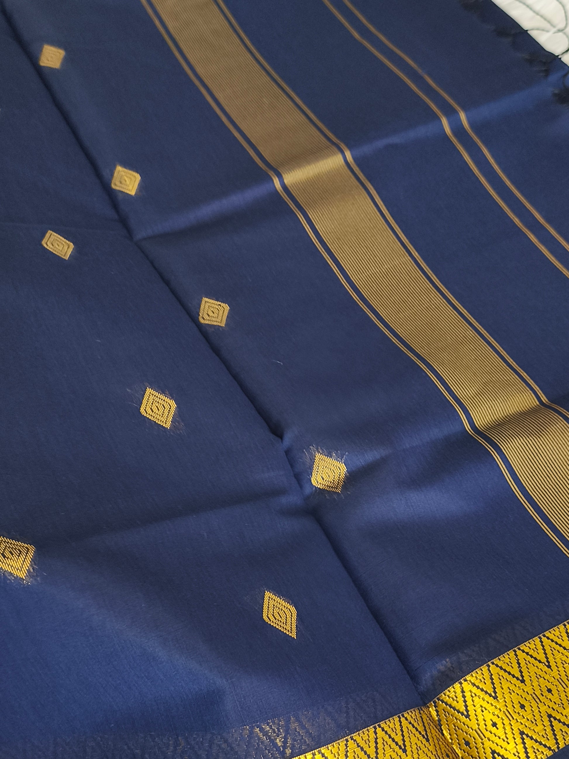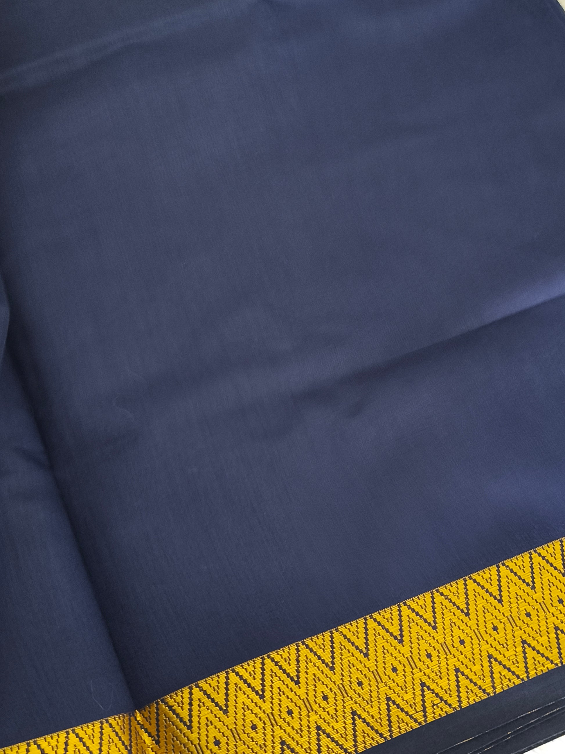 Navy blue silk cotton saree with running blouse.
