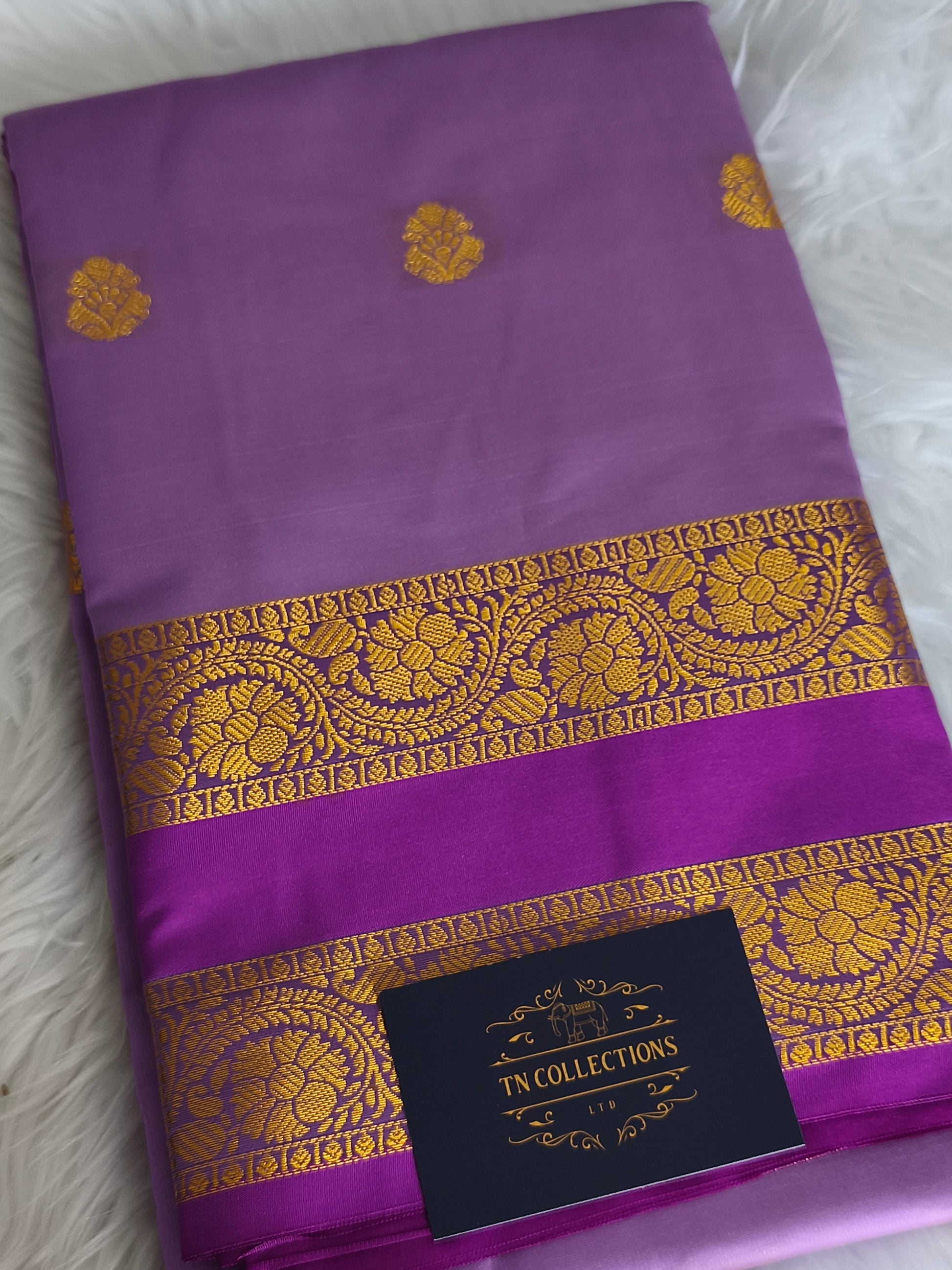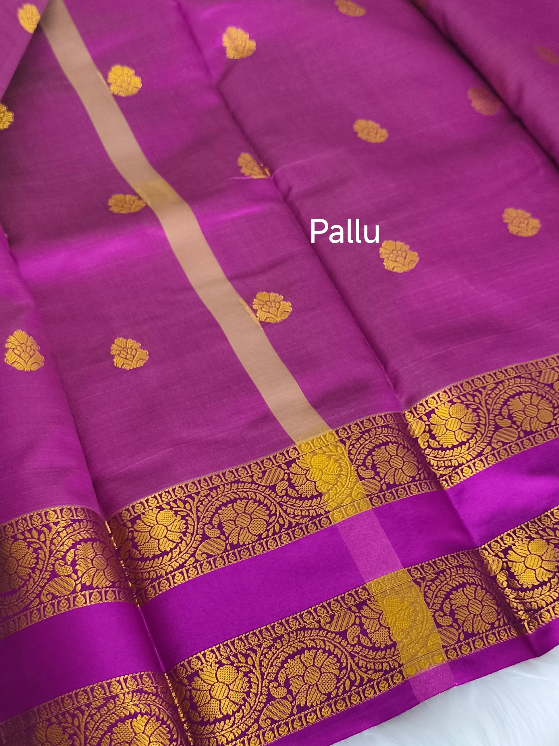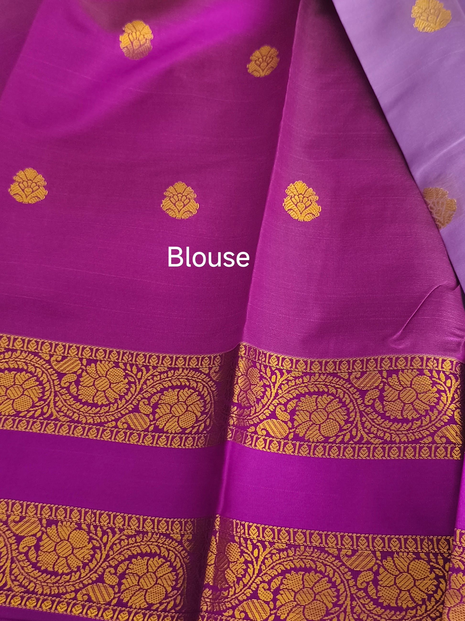 Beautiful trendy kanchi Semi soft silk saree with contrast blouse and rich pallu.