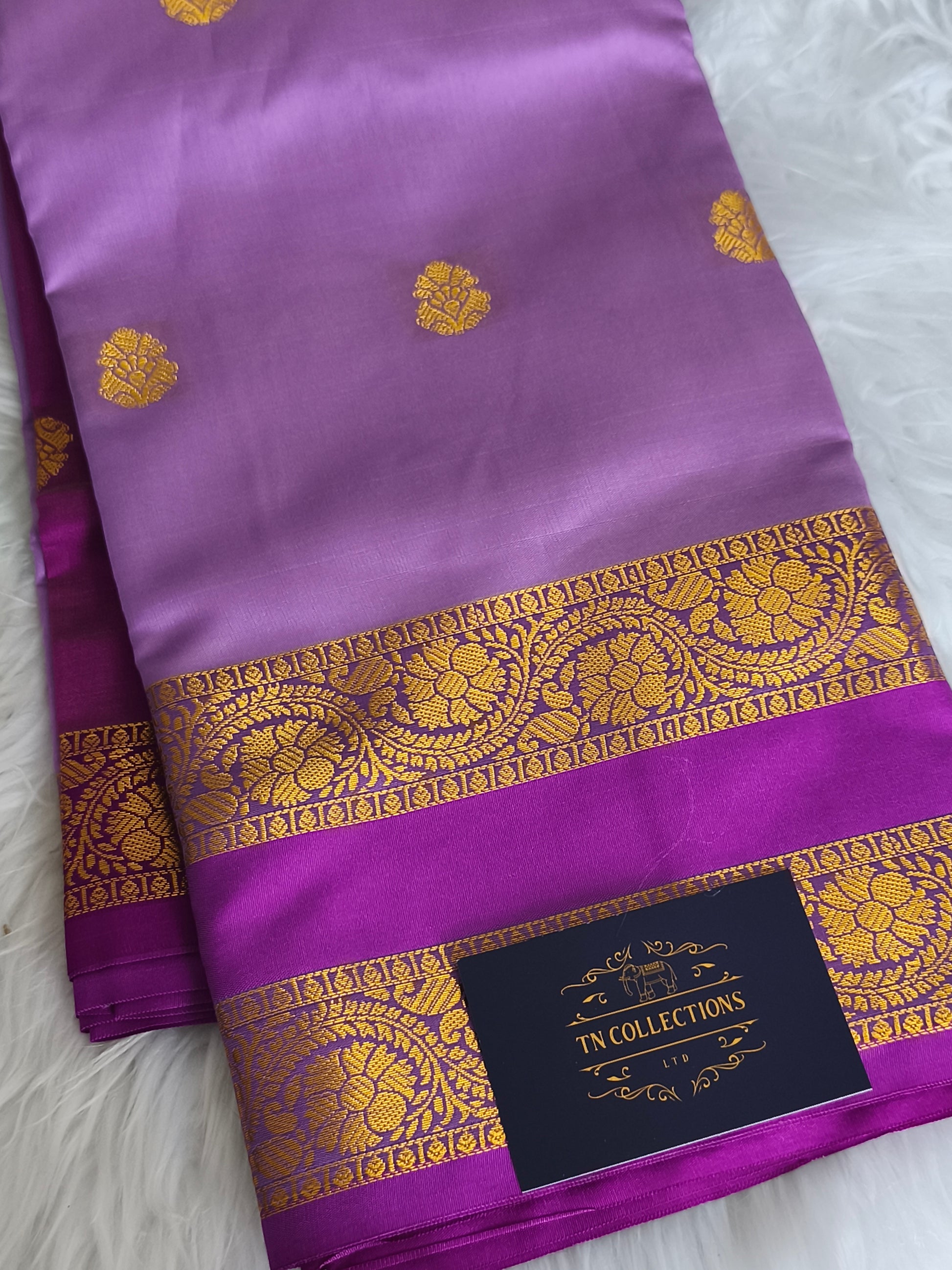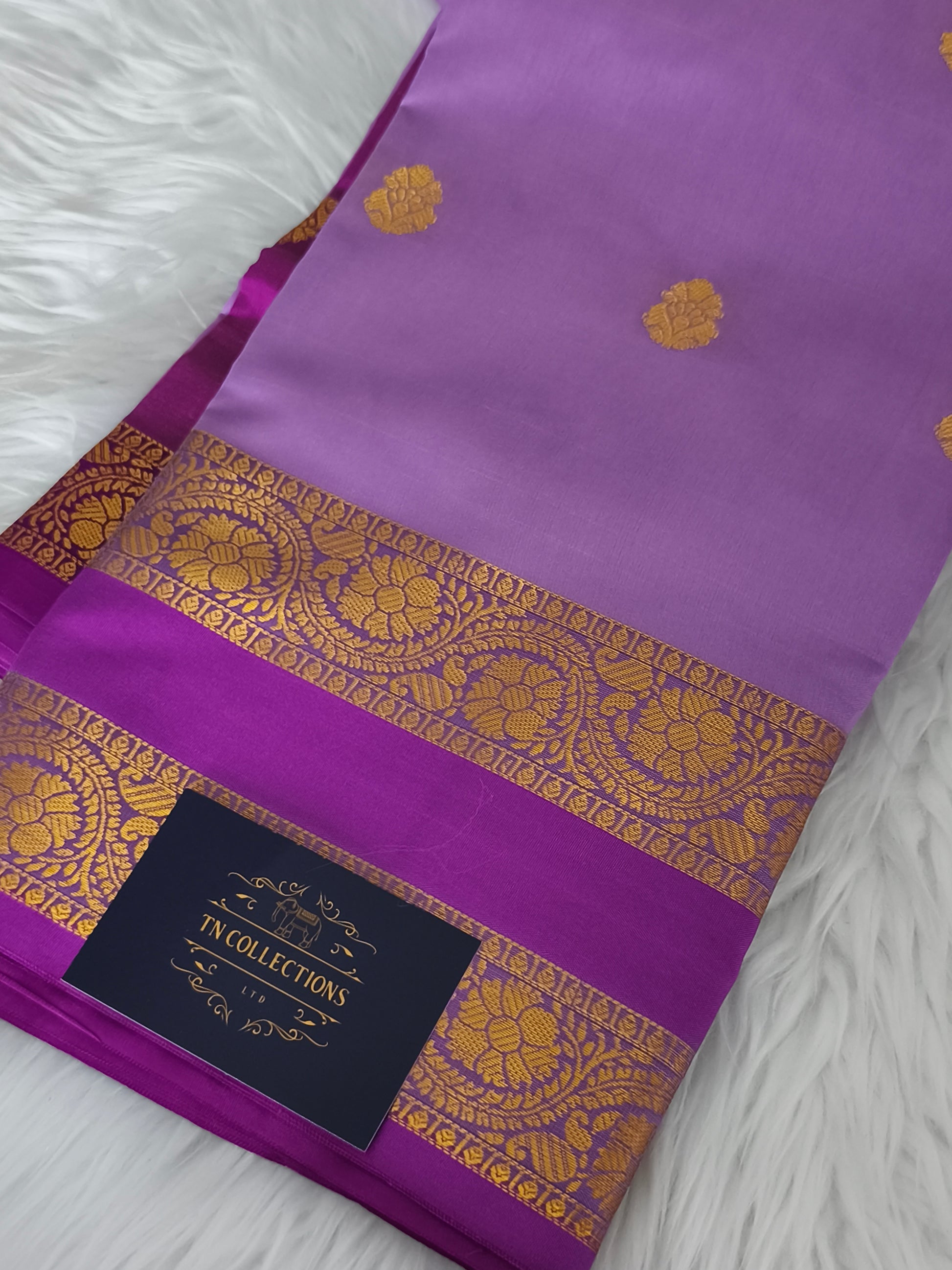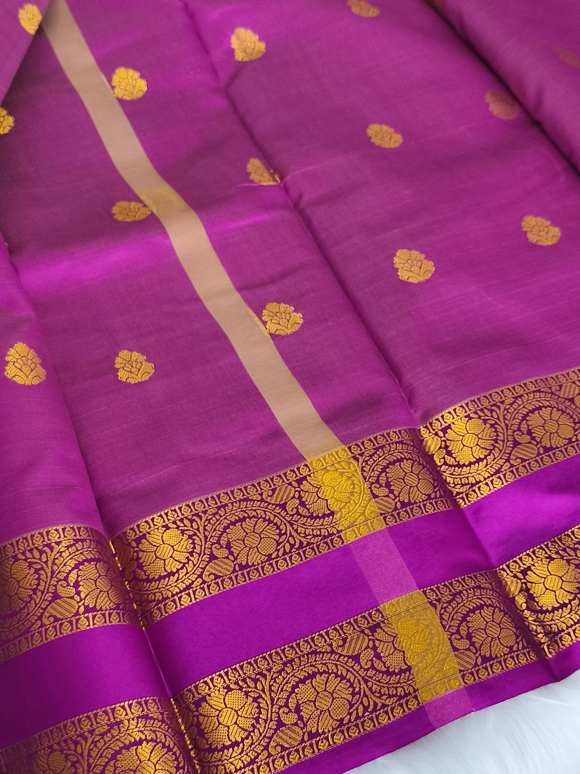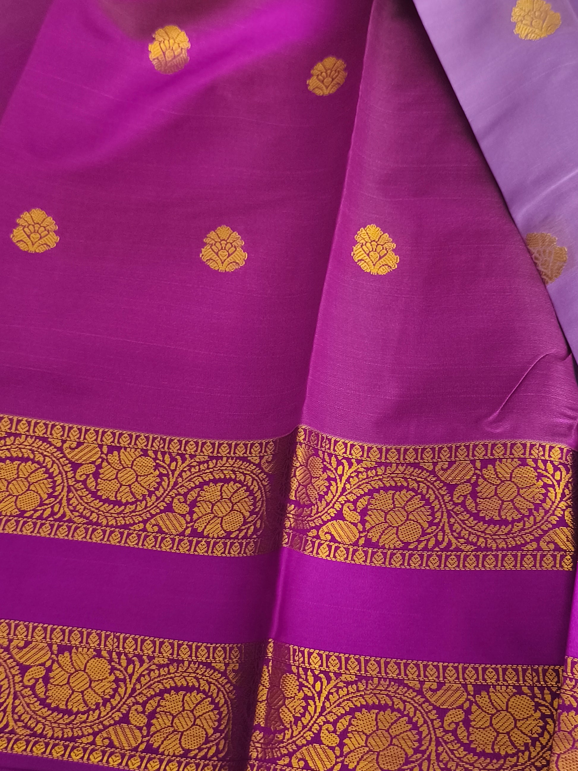 Beautiful trendy kanchi Semi soft silk saree with contrast blouse and rich pallu.