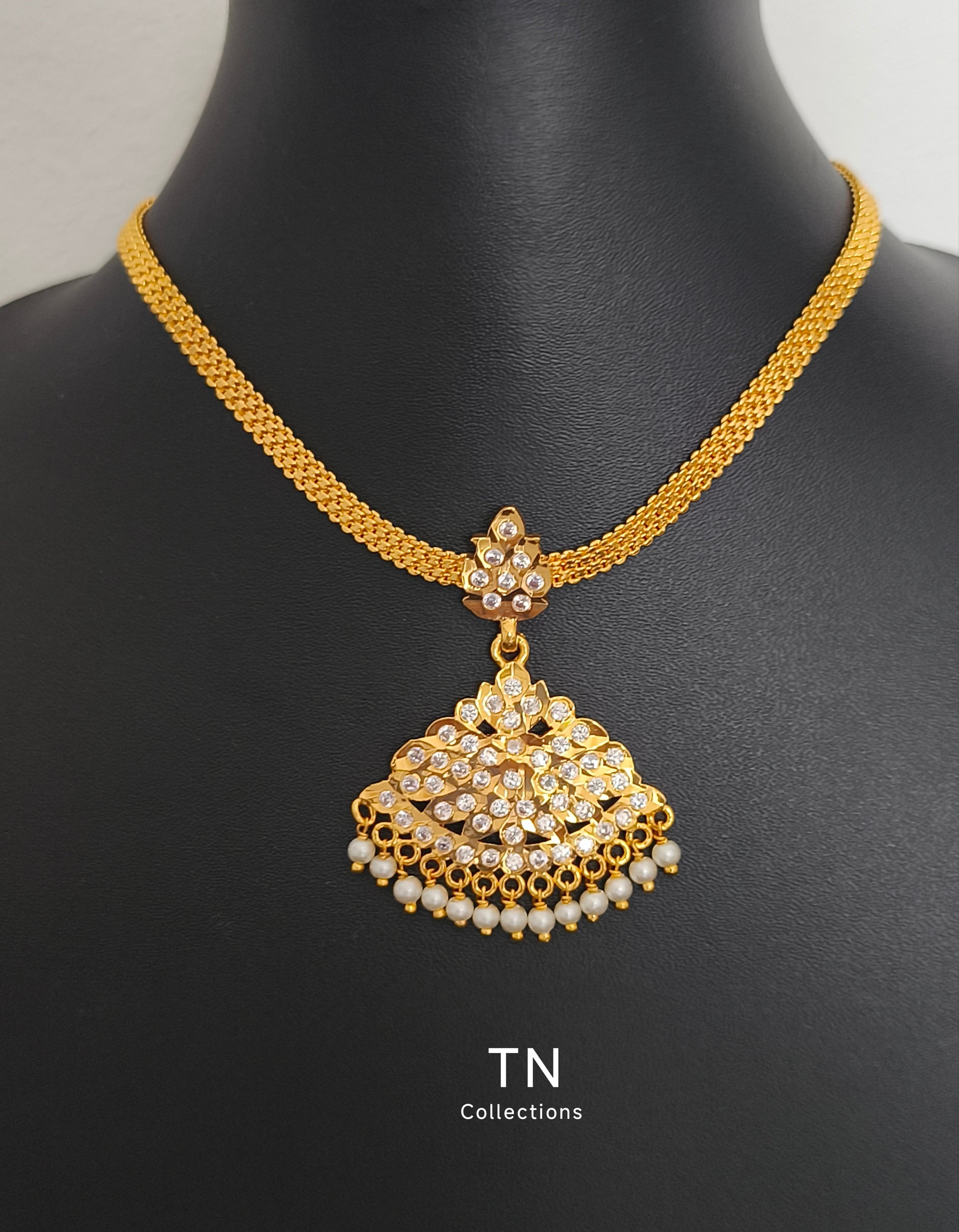 Traditional Impon Micro gold plated Attiyal/ Attigai with pearls hanging
