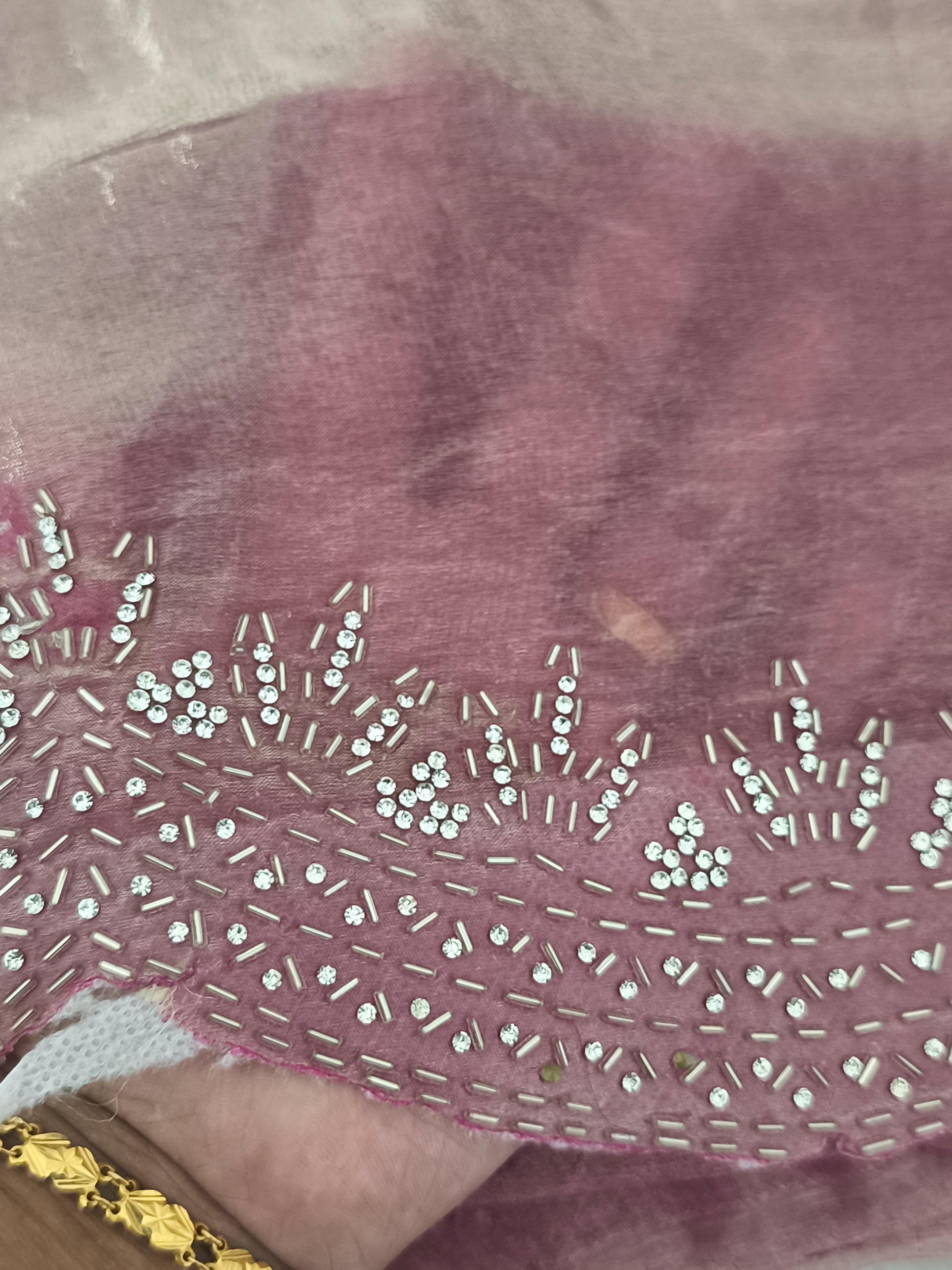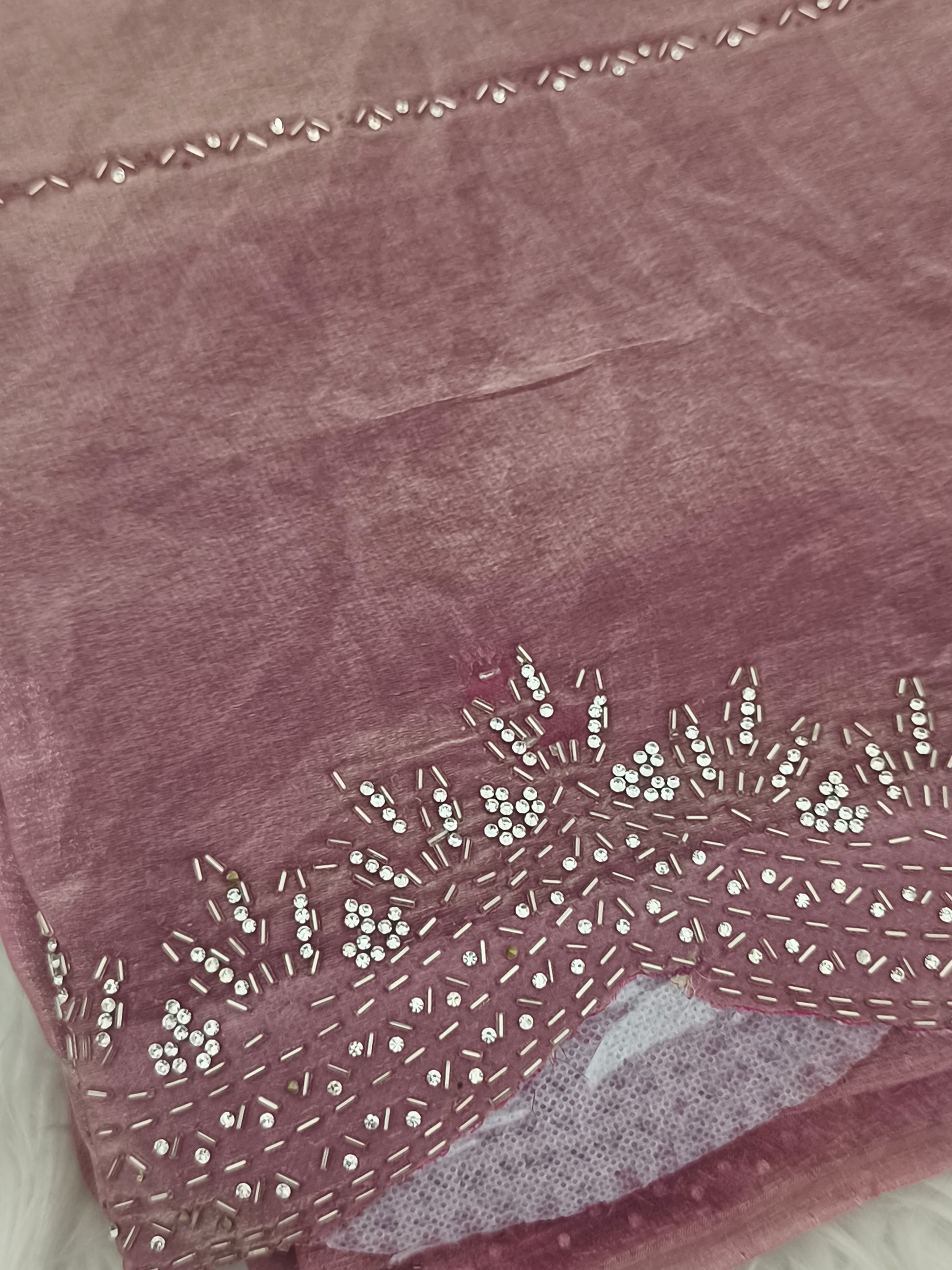 Fendy Chiffon Jarkhan Dimound Work Saree With Running Blouse