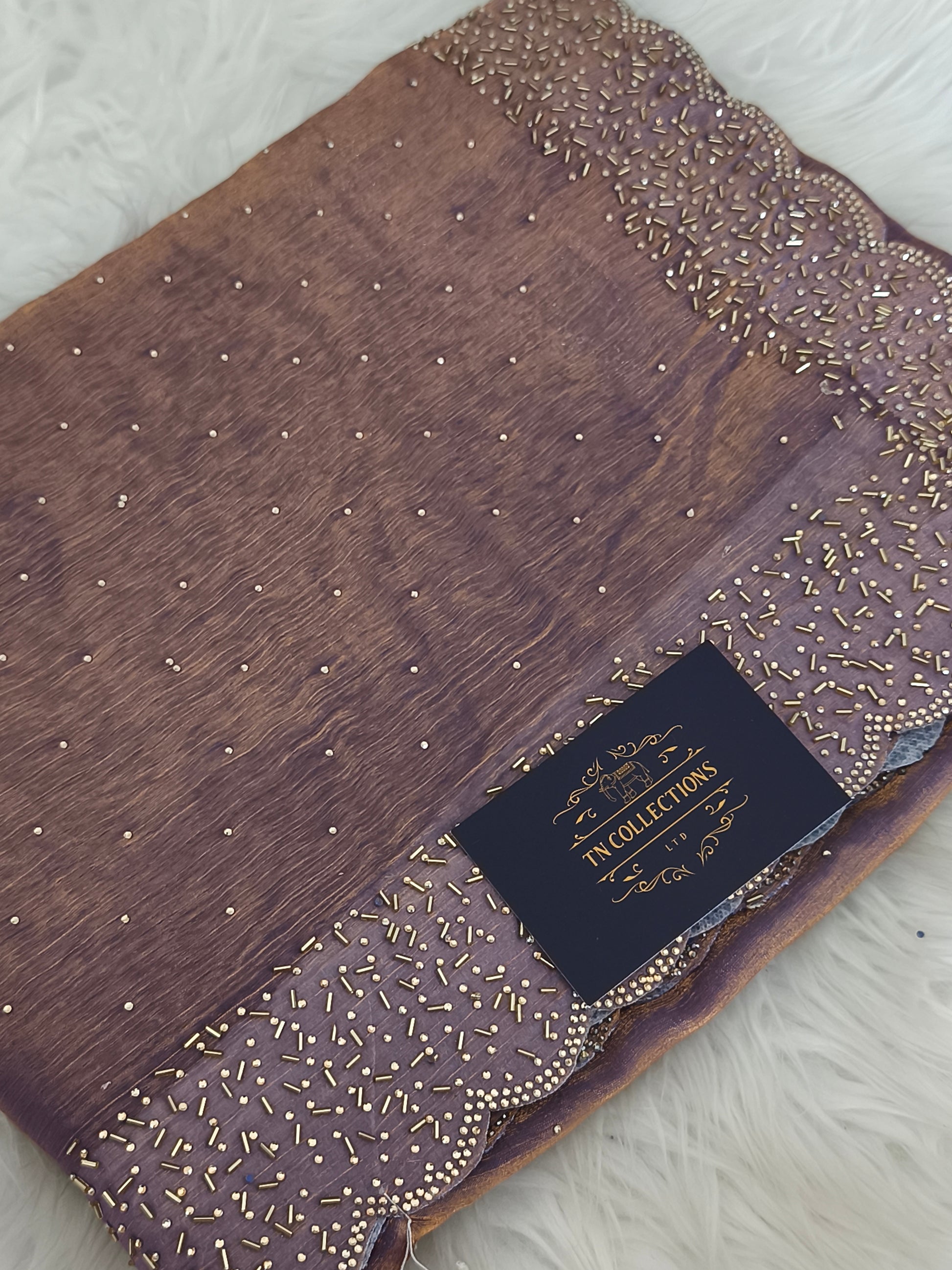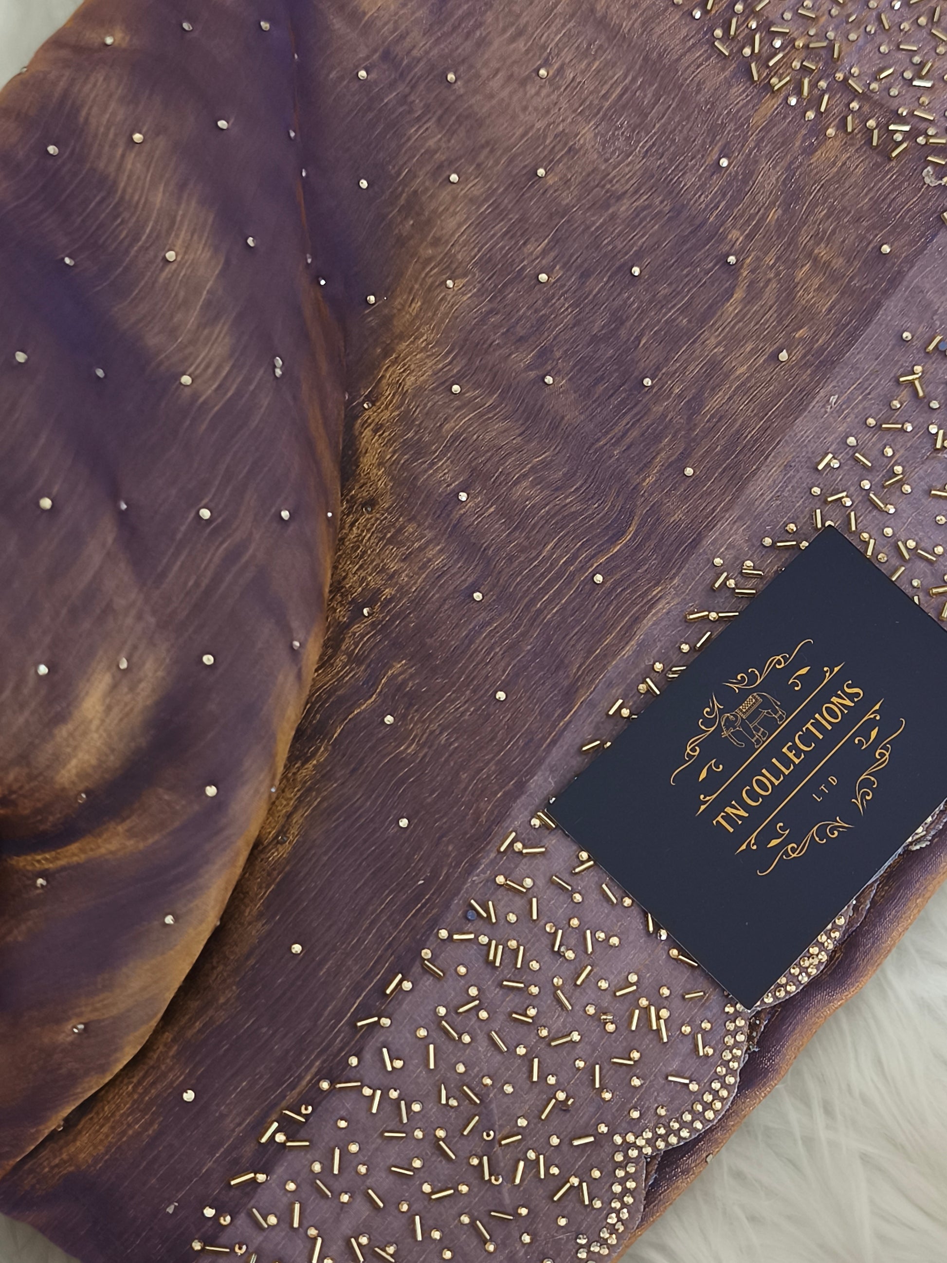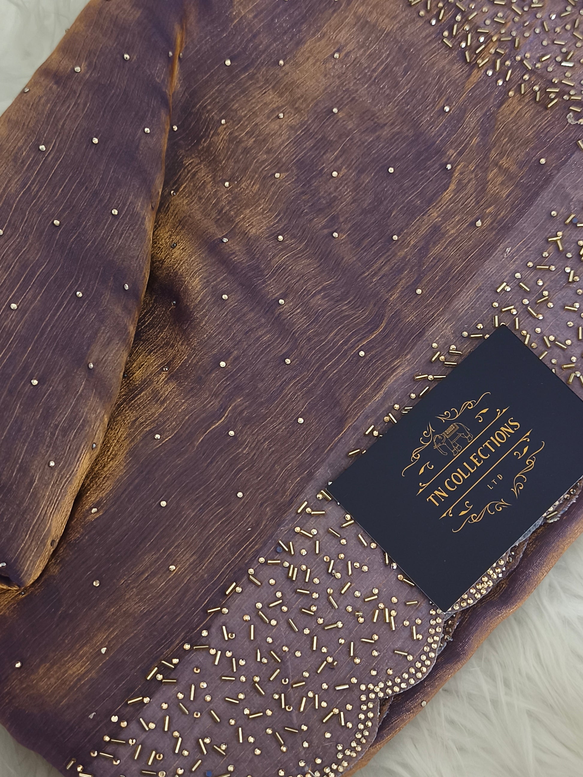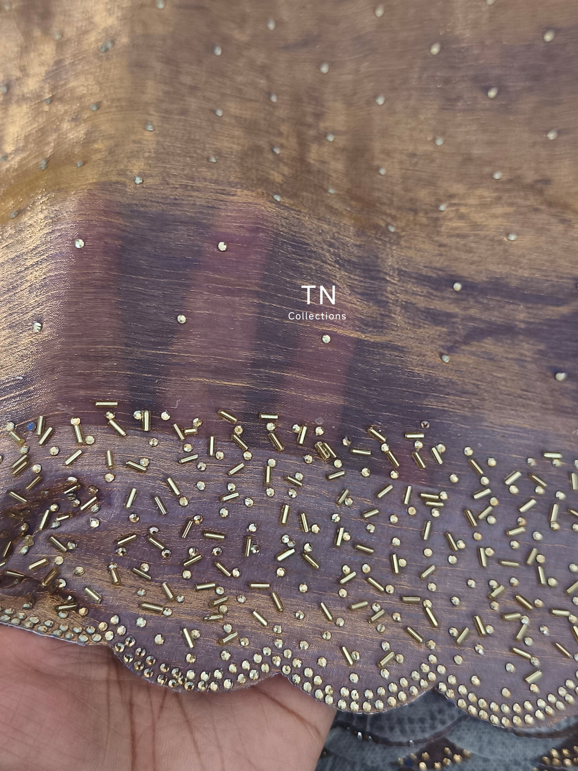 Dual tone Trendy space silk party saree with unstitched running blouse.