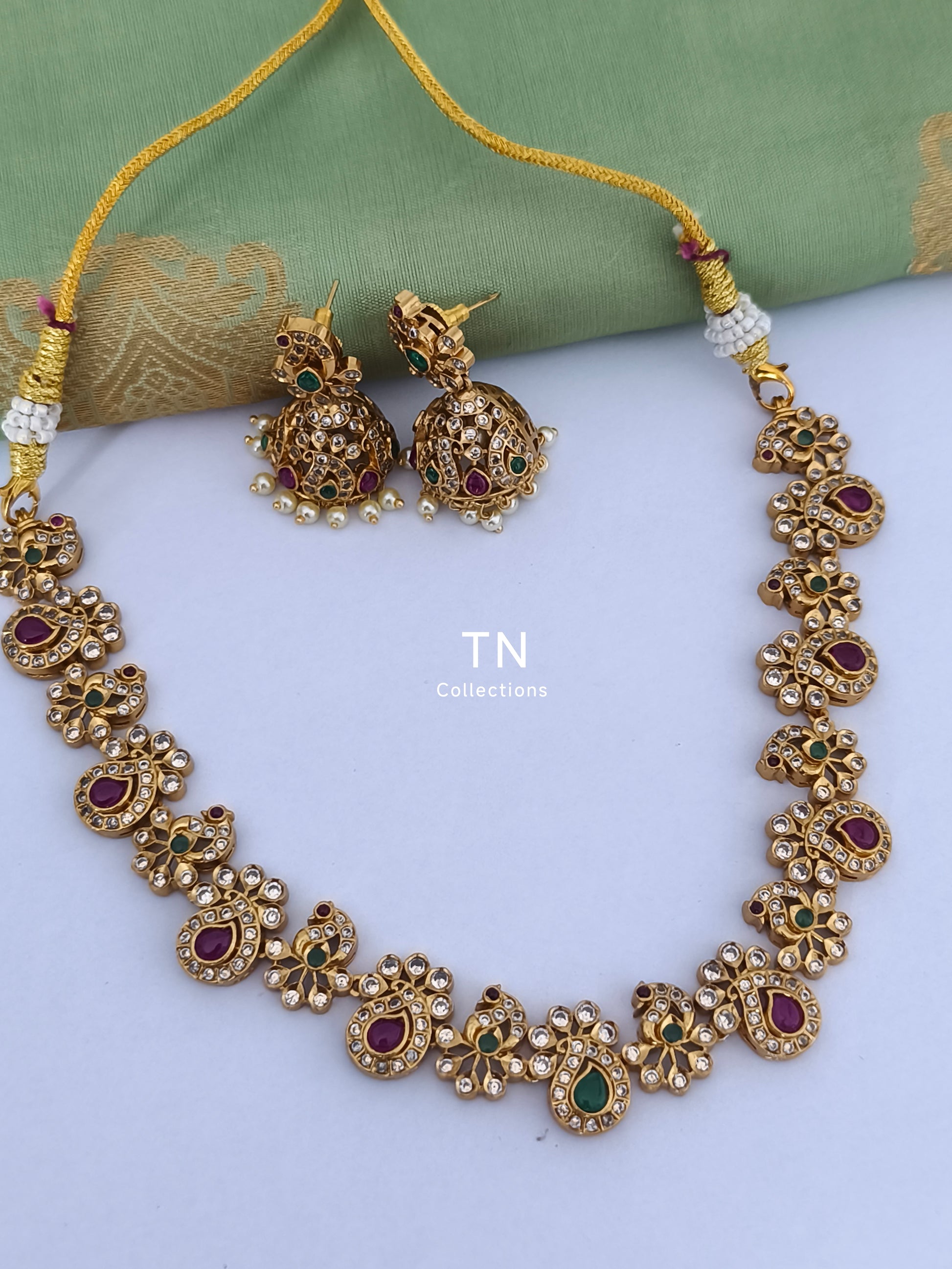 Premium Polish Matte Finish Choker Necklace with Earrings