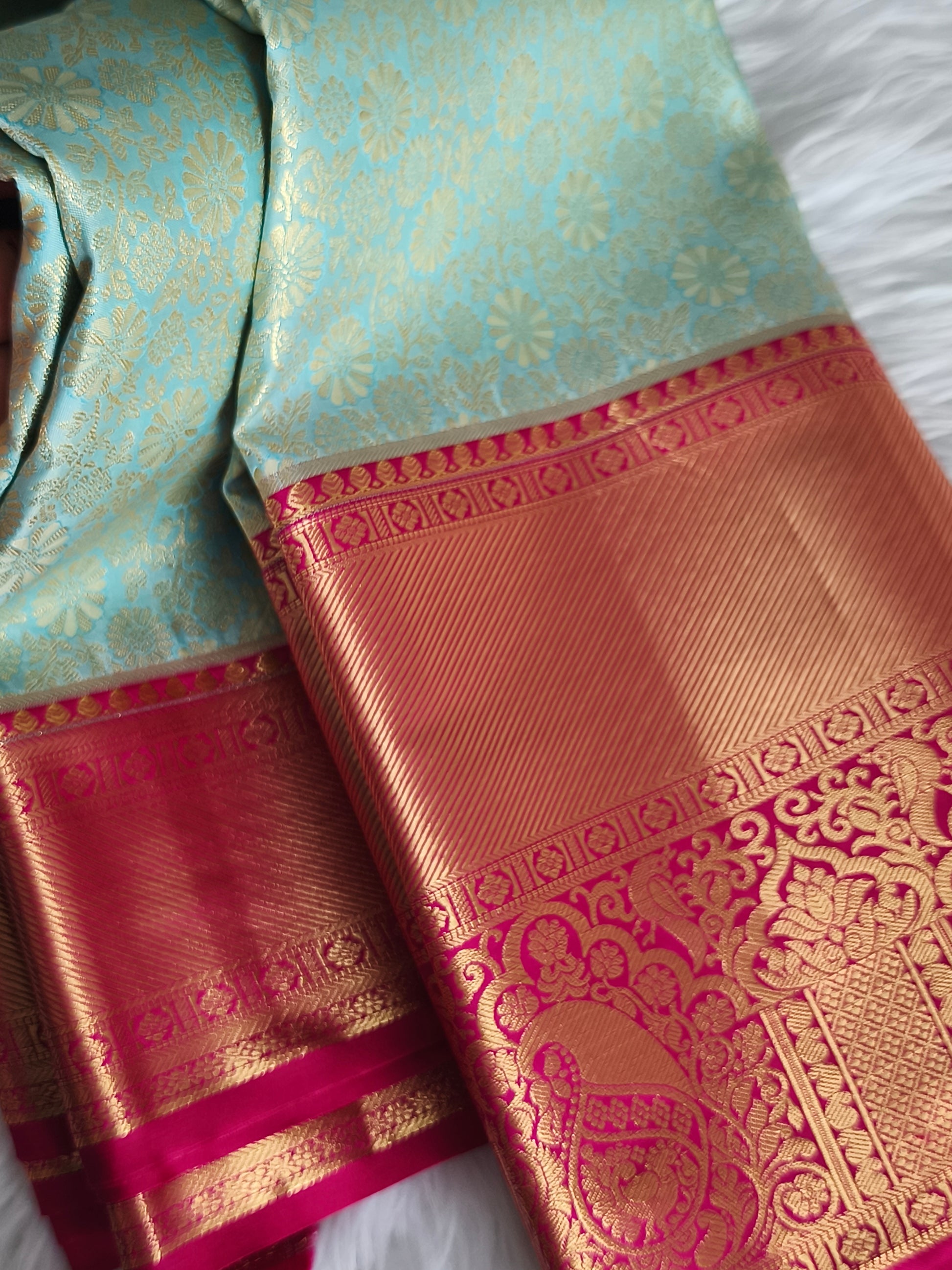 Traditional Semi Kanchipuram Silk saree with contrast blouse